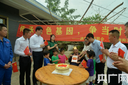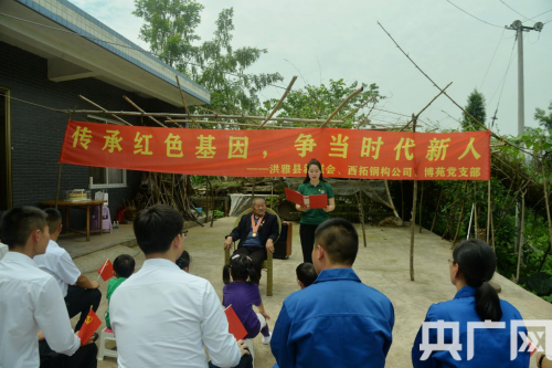 央廣網(wǎng)北京6月22日消息(記者 陳祥銳 通訊員 朱小根 林國強)黨旗迎風(fēng)飄揚,黨徽金光閃耀。6月21日,在四川省眉山市洪雅縣余坪鎮(zhèn)黃里村1組,光榮在黨69年、百歲老人、志愿軍老戰(zhàn)士宋加銀家里,由洪雅縣余坪鎮(zhèn)黨委政府、洪雅縣新聯(lián)會愛心企業(yè)四川西拓鋼構(gòu)公司、博苑幼兒園黨支部聯(lián)合開展的“傳承紅色基因,爭當(dāng)時代新人”活動,老黨員、青年黨員、新階層代表和少年兒童歡聚一堂,追憶紅色歲月,同慶黨的生日,一起過政治生日。