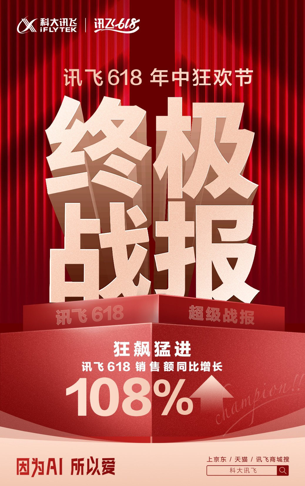 訊飛官微公布的數據顯示,訊飛智能錄音筆在今年的“618”期間取得了斐然戰績?拼笥嶏w全系產品銷售額狂飆猛進,同比增長108%,其中訊飛智能錄音筆系列連續三年蟬聯京東&天貓雙平臺錄音筆品類銷售額冠軍。