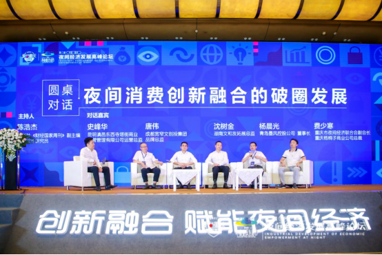 青島墨風控股公司董事長楊晨光,湖南文和友拓展總監沈樹金,重慶梧桐子商業公司總裁費少寒,成都寬窄文創投集團副總經理、成都文旅寬窄巷子公司副總經理馬慧,昆明滇邑東西寺塔街商業運營管理有限公司董事長黃駿,圍繞“夜間消費 創新融合的破圈發展”主題,以演講和對話的形式開展了圓桌對話。