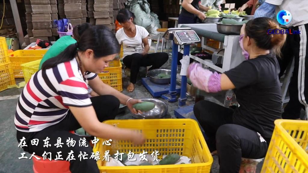 田東縣目前有3000多個電子店鋪銷售芒果,網(wǎng)絡(luò)覆蓋全國。在田東縣物流中心,工人們正在忙碌著打包發(fā)貨。農(nóng)村電商的蓬勃發(fā)展不僅為像黃尚善一樣的返鄉(xiāng)青年提供創(chuàng)業(yè)機遇,也提供了更多的就業(yè)機會。