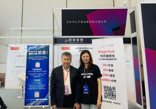 吾守爾·斯拉木蒞臨愛(ài)數(shù)智慧展臺(tái),了解愛(ài)數(shù)智慧核心技術(shù)及產(chǎn)品,并對(duì)MagicHub.io開(kāi)源社區(qū)非常感興趣,吾守爾鼓勵(lì)愛(ài)數(shù)智慧在多語(yǔ)種智能化研究和應(yīng)用上繼續(xù)努力,實(shí)現(xiàn)無(wú)縫交流。