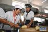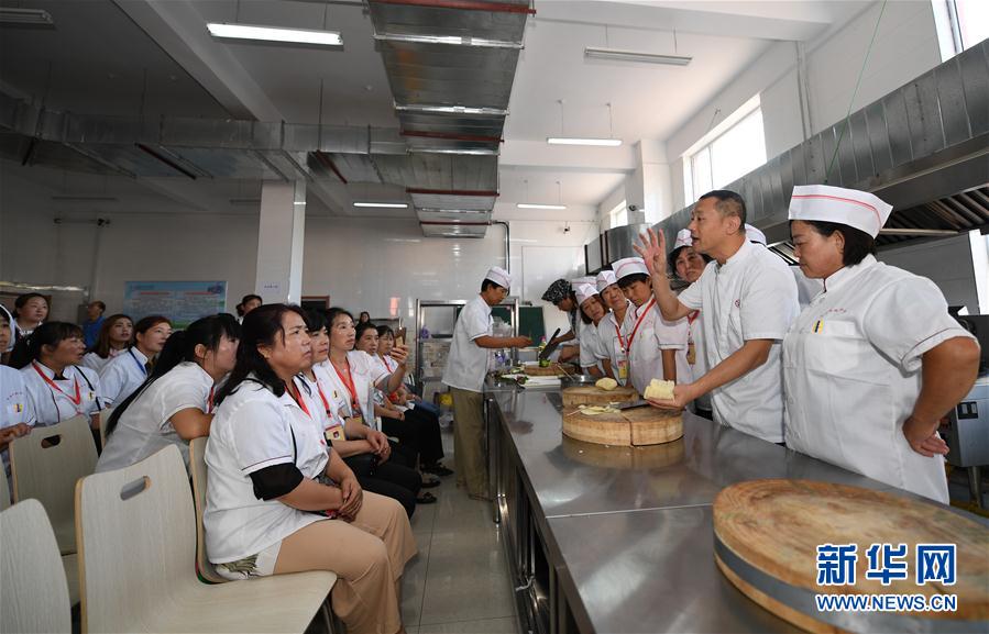 8月15日,在呂梁市嵐縣,培訓教師張春林(右二)在為參加土豆宴廚師培訓班的學員授課 山西省呂梁市嵐縣地處呂梁山北麓,日照充足,晝夜溫差大,種植土豆的條件得天獨厚,全縣土豆種植面積達到30萬畝,年產超過40萬噸。 近年來,嵐縣將土豆產業與土豆文化高度融合,打造了嵐縣土豆花、土豆宴、土豆種等多個品牌,闖出了一條特色土豆產業發展之路。 新華社記者楊晨光 攝 -