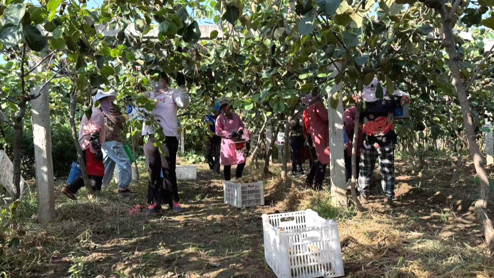 秋陽斜照,渭水畔的果園里,獼猴桃綴滿藤架,沉甸甸地壓彎了枝梢。