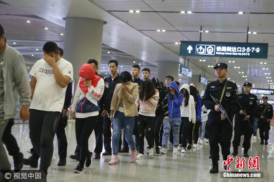 9月4日,涉嫌網絡詐騙嫌疑人被押回西安。利用微信和支付寶,詐騙西安市民40萬元,公安航天分局歷時兩個月,跨省抓獲25名嫌疑人,昨晚從黑龍江押解回西安。西安市公安局航天分局辦案民警介紹,今年上半年,該局接到一市民報警稱,其被人利用微信、支付寶等網絡手段,騙走40余萬元。該局迅速成立專案組,組織偵破。張杰攝 圖片來源:視覺中國 -