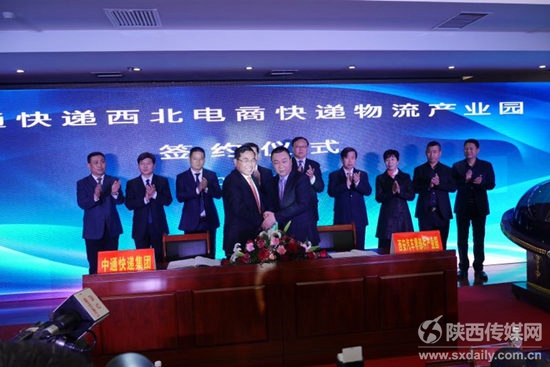 陜西傳媒網(wǎng)訊(記者 何葉)2月27日上午中通快遞西北(西安)電商物流產(chǎn)業(yè)園項(xiàng)目簽約儀式在陜西西安舉行。陜西省交通廳副廳長趙雷,西安戶縣縣委書記陸曉延、縣人大主任張閱農(nóng)、縣長張永潮等當(dāng)?shù)刎?fù)責(zé)同志應(yīng)邀出席儀式,中通董事、副總裁王吉雷出席并現(xiàn)場簽約。