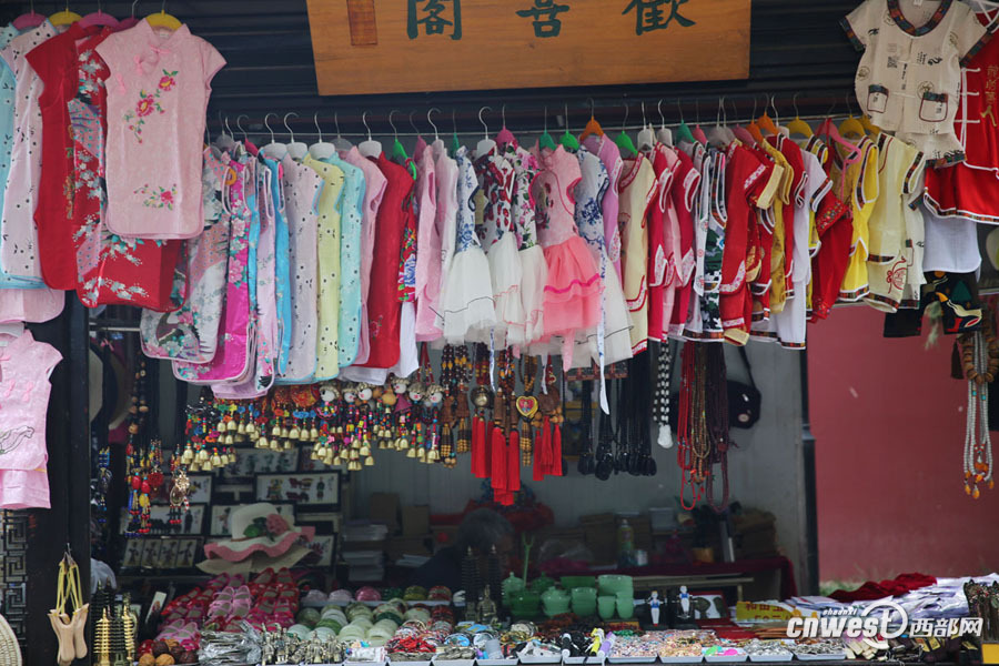 西部網訊(記者魏永賢)5月3日,西安大雁塔景區,大雁塔東側30來個商亭關了2個月后又開張了,這些商亭大多都掛著兒童服裝和鈴鐺,拍了十多張照片,除了店名不一樣幾乎都一樣,就像同一張照片。難怪有網友吐槽:為什么大好河山賣的多是“地攤貨”!