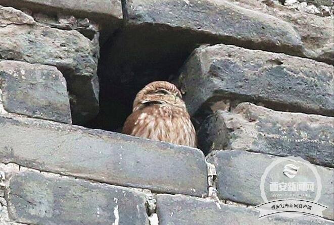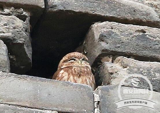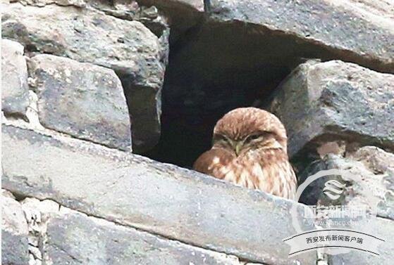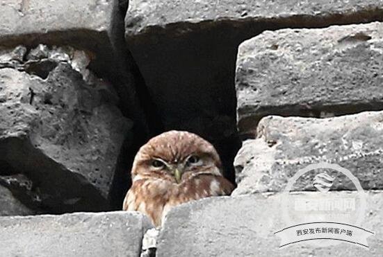 記者看到臥在磚縫中的縱紋腹小鸮表情豐富,一會兒怒目圓睜,隨時要上演現(xiàn)實版的“憤怒小鳥”,一會兒悠閑地閉目養(yǎng)神,一會兒又是左顧右盼。只要有人稍稍靠近城墻腳下,它馬上把腦袋縮進磚縫里,沒一會兒又把腦袋探了出來。 -