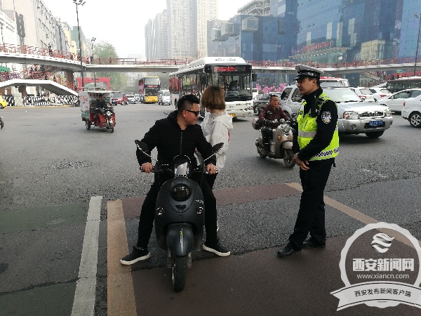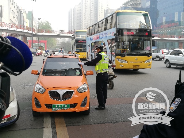 6號上午10點,記者來到小寨十字,十字西南角停放著10余輛兩輪車和3輛電動三輪車。雁塔大隊小寨中隊教導員賀向偉介紹,兩三輪車闖紅燈、走機動車道、穿插行駛等違法行為十分普遍,這些車大多數都是無牌照、無手續、非法運營。說話間,一輛橙色的老年代步車在機動車道從北向南駛來,并且沒有懸掛號牌,賀向偉將其攔下。面對查處,這名50多歲的駕駛人表示很“冤”,“買的時候商家說沒問題,沒想到過不去交警這關!倍宜沒有駕駛證。