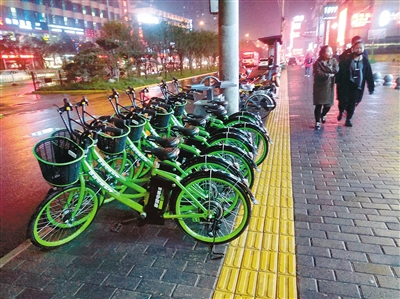 《指導意見》規定由市城管局負責制定互聯網租賃自行車停放管理標準,協調各區(縣)、開發區指導人行道互聯網租賃自行車停放管理。由各區(縣)、開發區負責根據市城管局制定的人行道互聯網租賃自行車停放管理標準,落實自行車停放區設置,對不適宜停放的區域和路段,制定負面清單實行禁停管理;負責自行車停放秩序和環境衛生的日常執法管理;負責對亂停亂放問題嚴重的運營企業限制其投放;負責組織沿街單位、小區、商鋪等在其用地范圍內根據需要合理設置自行車停放區。目前,市城管局已制定互聯網租賃自行車停放管理標準及措施并實施。