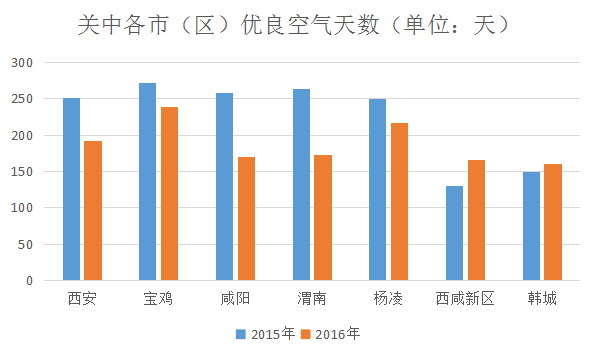 2016年關中多地優良空氣天數下降 (數據來源于陜西省環保廳)