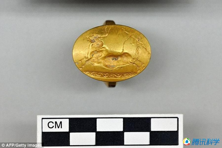 目前,考古學家在希臘境內挖掘發現一具3500年前古代戰士墳墓,發現的大量珍寶有助于揭曉古希臘文明的起源。考古學家共挖掘發現4枚戒指,圖中是一枚金戒指,圖案顯示一只跳躍的公牛,這是古希臘克里特文明中一種最普通的圖案主題。(騰訊科學訊悠悠/編譯)