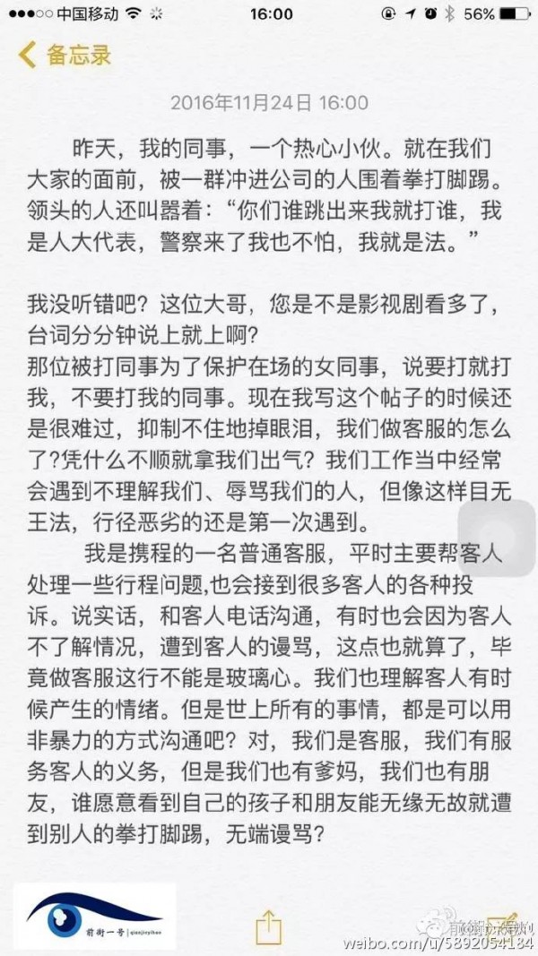 上周六,沈某帶著11個(gè)人來到攜程公司辱罵客服,稱攜程欺詐,索要退一賠一的補(bǔ)償,共計(jì)近11萬元。