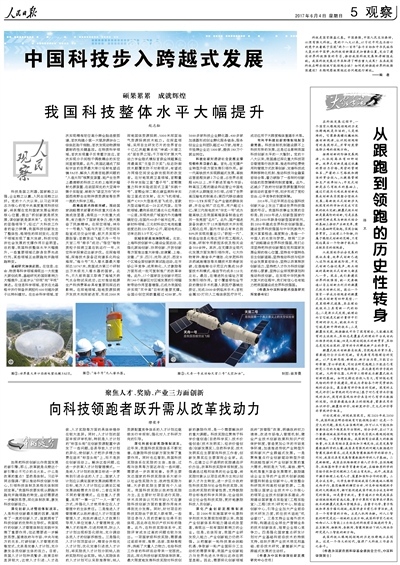 科技是國家強(qiáng)盛之基。中國要強(qiáng),中國人民生活要好,必須有強(qiáng)大科技。黨的十八大以來,以習(xí)近平同志為核心的黨中央著眼于實(shí)現(xiàn)“兩個一百年”奮斗目標(biāo)和中華民族偉大復(fù)興的中國夢,把科技創(chuàng)新擺在更加重要位置,發(fā)出了建設(shè)世界科技強(qiáng)國的號召,推動我國科技發(fā)展取得輝煌成就。我國科技發(fā)展近年來取得了哪些重大成果?未來我國科技在哪些領(lǐng)域可能領(lǐng)跑全球?如何更好推進(jìn)世界科技強(qiáng)國建設(shè)?本期觀察版圍繞這些問題進(jìn)行闡述。