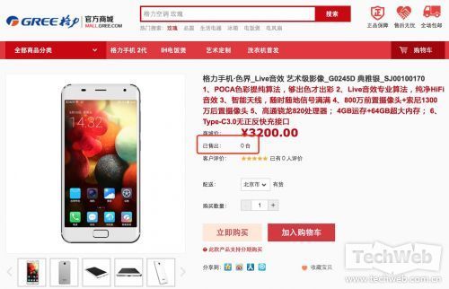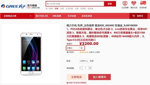 該機售價3200元,這價位在目前旗艦手機市場已經沒什么優勢了,通過格力官網“已售出”累計來看,總共僅只賣出了5臺(其中奢華金賣了4臺,玫瑰金1臺,雅典銀0臺),引起了眾多網友猜測這款手機竟然會有人賣?購買的人是那種類型的人呢?