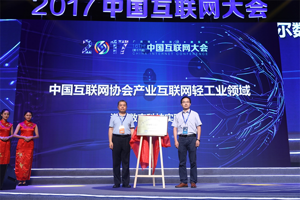 中國(guó)互聯(lián)網(wǎng)協(xié)會(huì)秘書長(zhǎng)盧衛(wèi)與海爾互聯(lián)工廠項(xiàng)目總監(jiān)王勇為“產(chǎn)業(yè)互聯(lián)網(wǎng)輕工業(yè)領(lǐng)域海爾數(shù)字科技實(shí)驗(yàn)室”揭牌