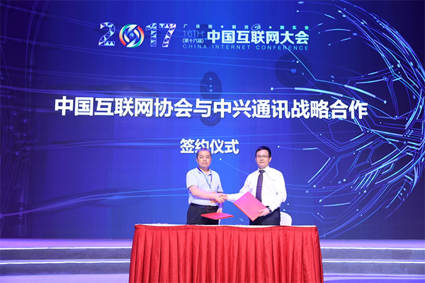 中國(guó)互聯(lián)網(wǎng)協(xié)會(huì)秘書長(zhǎng)盧衛(wèi)與中興通訊股份有限公司高級(jí)副總裁兼政企中國(guó)事業(yè)部總經(jīng)理朱永濤簽署戰(zhàn)略合作協(xié)議