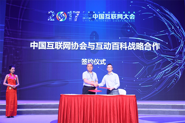 中國(guó)互聯(lián)網(wǎng)協(xié)會(huì)秘書長(zhǎng)盧衛(wèi)與互動(dòng)百科創(chuàng)始人潘海東董事長(zhǎng)簽署戰(zhàn)略合作協(xié)議