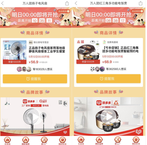 對(duì)此,有業(yè)內(nèi)人士指出:“在新增用戶大量涌入之際,(拼多多)推出‘萬人團(tuán)’活動(dòng),意在進(jìn)一步提升用戶的留存和復(fù)購率。從行業(yè)角度看來,5月是電器類等產(chǎn)品的銷售旺季,活動(dòng)也契合了市場需求!