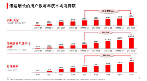 2019年上半年,拼多多進一步擴大全域用戶規模增長的領先優勢。