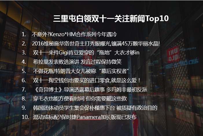 (三里屯白領(lǐng)雙十一關(guān)注新聞前十名)