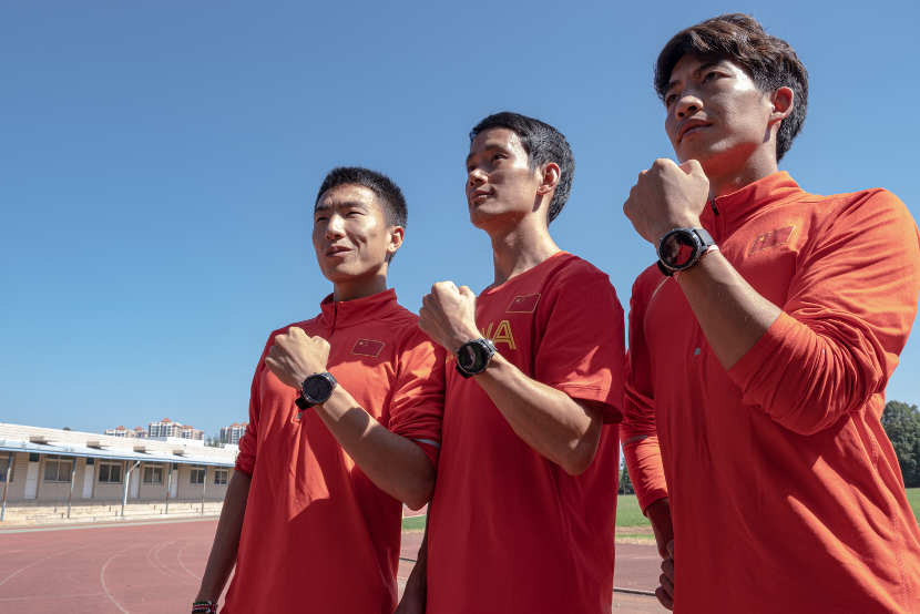 (左起)馬拉松國家隊隊員彭建華、董國建、楊紹輝佩戴Amazfit智能運動手表3