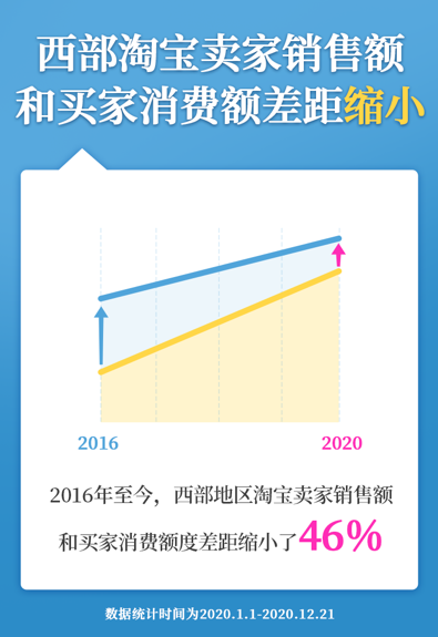 西部淘寶賣家數(shù)量提升、消費者線上消費增長的同時,西部地區(qū)的產(chǎn)品也以更快的速度走向全國。數(shù)據(jù)顯示,過去五年,西部地區(qū)淘寶賣家銷售額和買家消費額度的差距縮小了46%。而且,不斷有西部“土生土長”的新品牌在淘寶天貓平臺嶄露頭角。