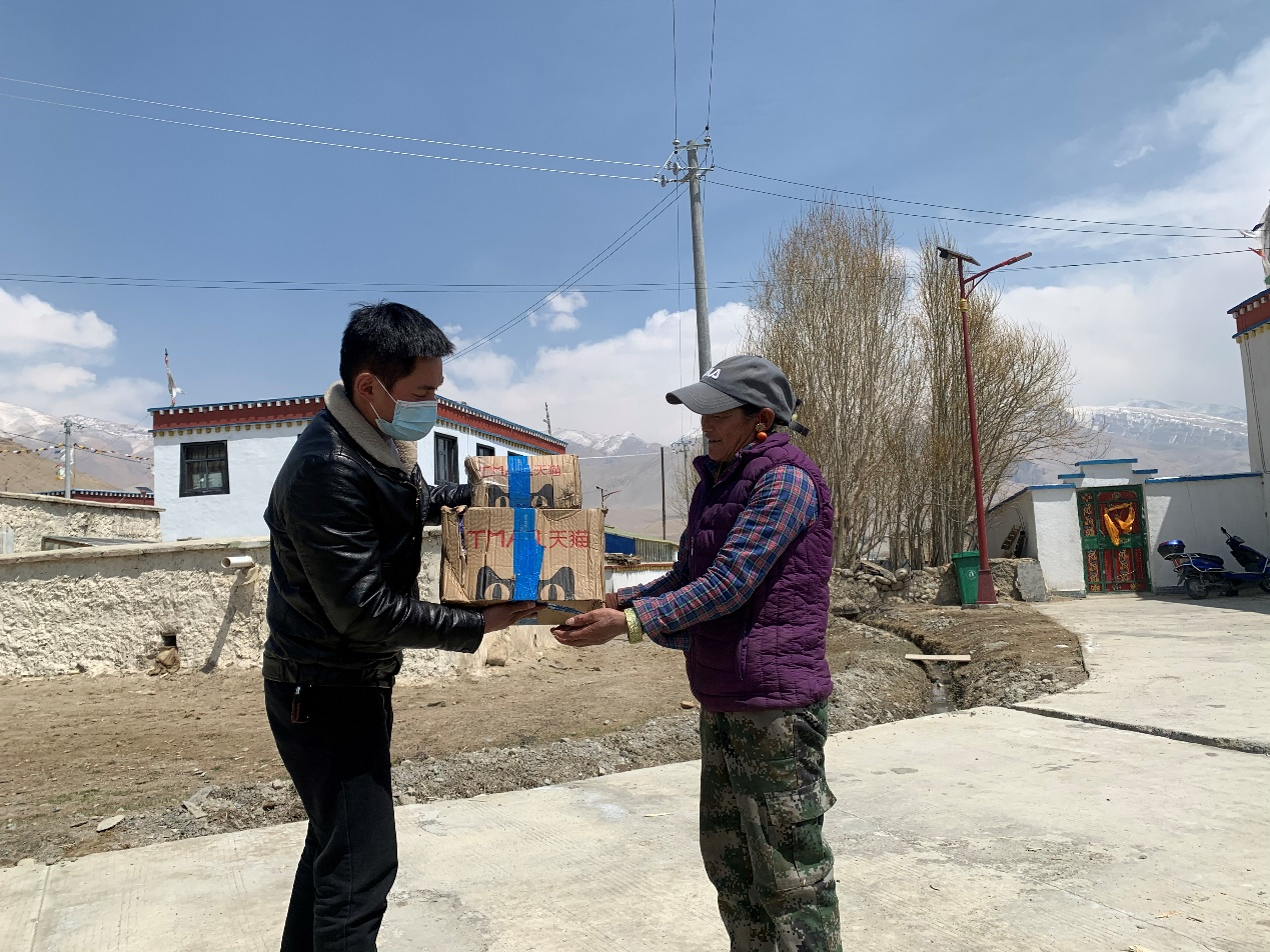 普蘭縣共同配送站點快遞員在為村民送快遞