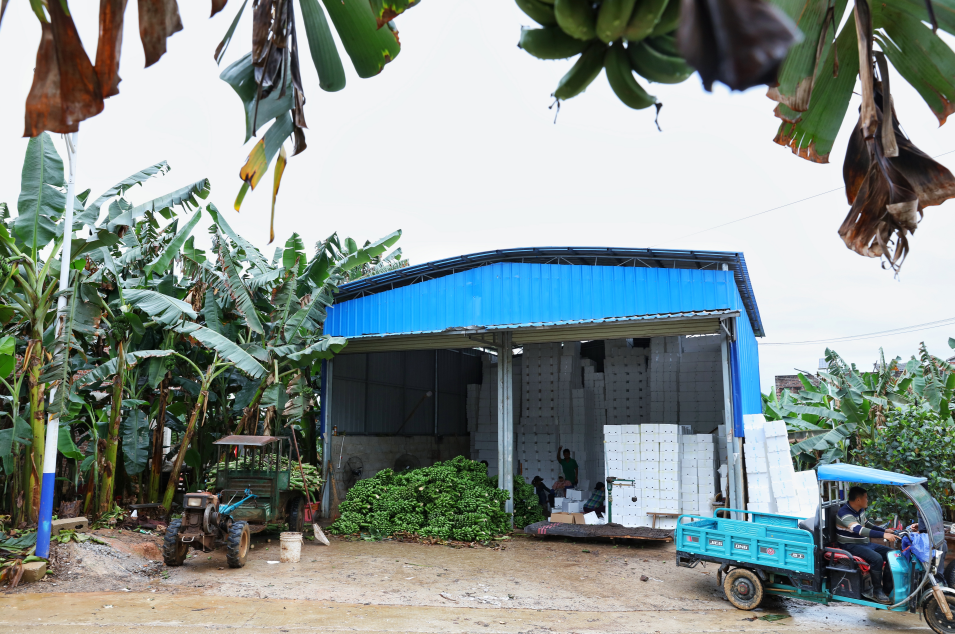 一個村的生活圖景和主要經濟來源,都圍繞著這個倉庫展開。村里大多數農戶,都有20畝至40畝左右的小米蕉田,隨著小米蕉身價的攀升以及打包等工種的需求,不少村民的年收入超過了十幾萬,是電商入村以前的三四倍。