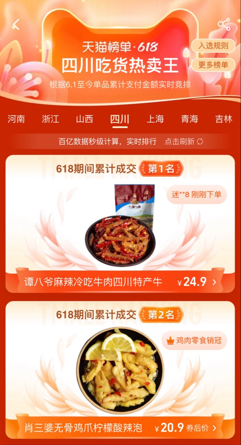 圖:四川吃貨熱賣榜 前三名里兩個辣的
