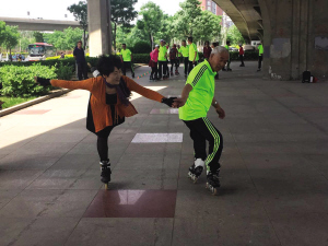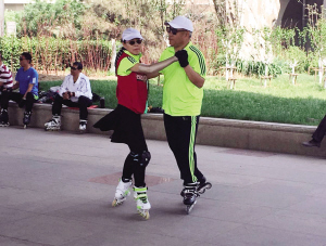 輪滑隊的李樹青告訴記者,他們在華爾茲原舞步的基礎(chǔ)上進行了創(chuàng)新,增加了諸如“太空步”“單腳滑行”等幾個自創(chuàng)動作。這些動作對年輕人來說并不難,可對于老年人來說腿部、腰部的力量和身體的平衡尤為重要。輪滑華爾茲最難的就是轉(zhuǎn)圈和轉(zhuǎn)身兩個動作,這要求每位舞者的輪滑技術(shù)過硬,舞伴之間的配合要默契,否則很難完成。