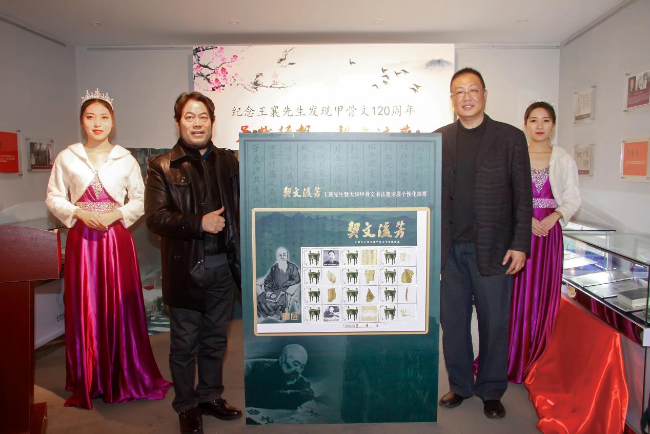 活動現場由天津近代歷史文化博物館出資,由中國郵政天津公司出品的“契文流芳紀念王襄先生發現甲骨文120周年”為主題的郵折和首日封進行了現場揭牌與簽字首發。現場還有近50余件甲骨文實物和百余幅甲骨文書法作品進行展覽。