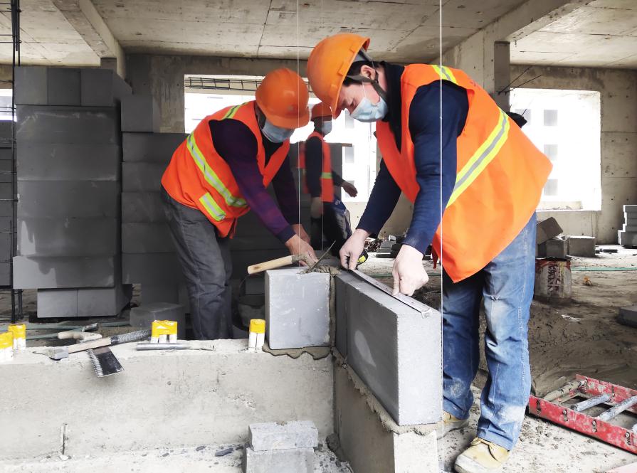 砌筑工班組在砌筑墻體(央廣網發 中建三局供圖)