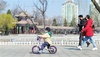 春日里,晴空下,公園嫩柳吐綠,游人精神飽滿,一派蓬勃生機……