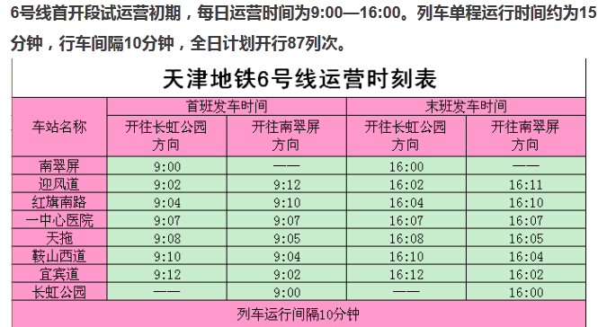 6號線首開段車站發(fā)車時間