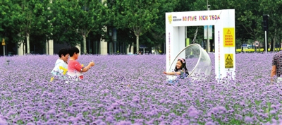 泰達城市廣場兩萬多平方米的大花園升級后,從空中俯瞰可見“泰!眻D案,中間通道還增設了精巧的花式秋千,讓游客流連忘返。本報記者 王濤 攝