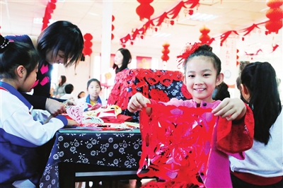 昨天,天津市津南區(qū)少年宮開展了“走近非遺文化·少年宮里過年”暨津南區(qū)“第八屆津沽文化日”主題文化活動,讓孩子們在少年宮里體驗中華民族傳統(tǒng)節(jié)日春節(jié)的喜慶氣氛,體驗非遺文化的魅力。本報記者 王倩 攝