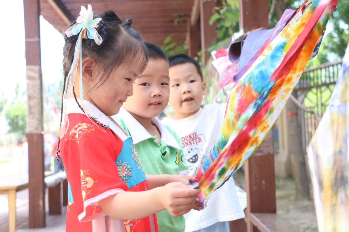 日前,天津市北辰區溫雅幼兒園的小朋友們在老師的指導下,感受中華民族傳統的蠟染技巧。