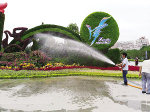 全運會來了,漂亮的城市讓外地客和本市人都飽了眼福。迎接全運盛會的到來,本市布置的立體園林景觀,前期的設計、栽植等工作,園林工人們付出了辛苦的努力。新布置的立體園林景觀,養護點位很多,總共有六七十個花卉景點。