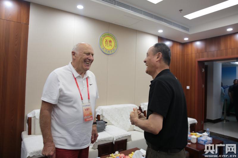 央廣網(wǎng)天津9月2日消息(記者劉陽 褚夫晴 通訊員鄒青穎)9月2號上午,國際田聯(lián)名譽副主席,德國田徑協(xié)會名譽主席、德國Tubingen大學教授、Helmut Digel博士在十三屆全運會賽會競委會執(zhí)行主任、國家體育總局武術管理中心主任張秋平同志陪同下觀看了在天津農學院舉辦的第十三屆全運會武術散打比賽。