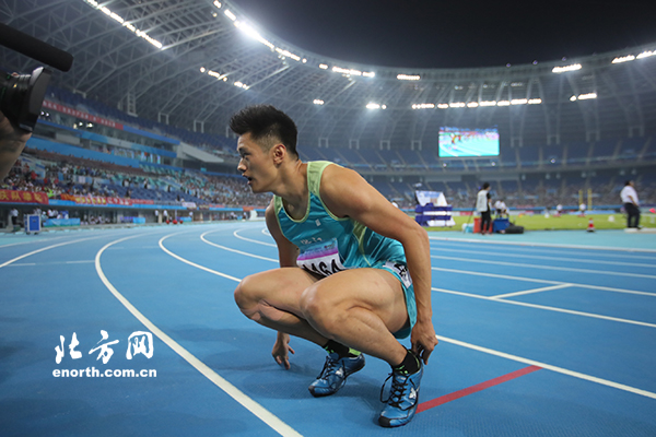 接近完美的起跑,沒有絲毫停頓的彎道轉直道以及令人振奮的最后沖刺,這種種聚集在一起凝聚成一個全新的全國紀錄。奪冠后的謝震業雙手指天,享受勝利所帶來的喜悅。5日的夜晚,謝震業再次跑出最好的自己,在跑道上他盡情展現風采,將年輕人追逐夢想的姿態展現的淋漓盡致。