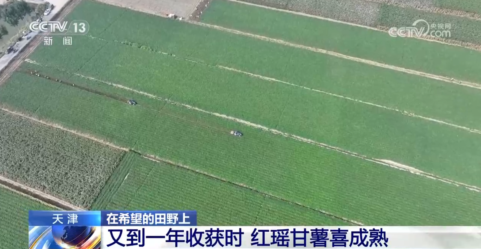 眼下,天津市寧河區種植的2.2萬畝紅瑤甘薯成熟,農田內一派忙碌景象。