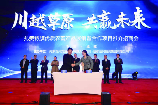 推介招商會上,扎賚特旗人民政府與成都益民投資集團有限公司簽署戰略合作協議,將在種植、養殖板塊,糧食、肉類加工以及農副產品貿易等領域全面合作;同時,扎賚特旗與杭州種業集團、吉平農牧業有限公司簽署水稻和鮮食大豆繁育基地項目合作協議以及5000頭肉牛養殖項目合作協議;內蒙古森發林業開發(集團)與成都中際投資集團有限公司簽署肉牛肉羊養殖加工項目合作協議;內蒙古天牧臻肉業有限公司與成都北方漢子食品有限公司簽署牛羊肉代理項目合作協議。