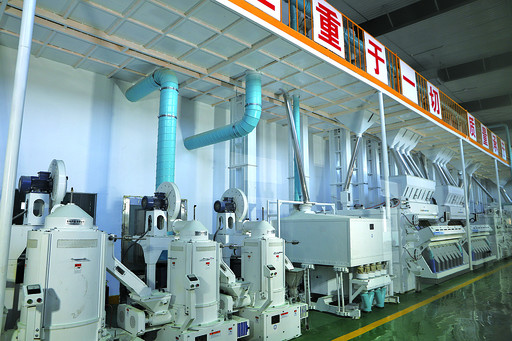 內蒙古華貿食品科技有限公司大米加工車間的智能生產線。何娜 攝