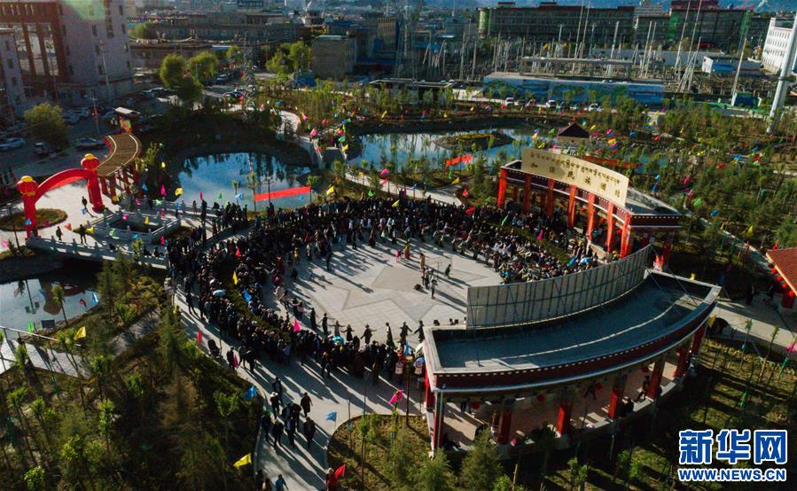 •      西藏日喀則市群眾在民族團(tuán)結(jié)主題公園內(nèi)跳鍋莊舞(6月2日無人機(jī)拍攝)。新華社記者 劉東君 攝