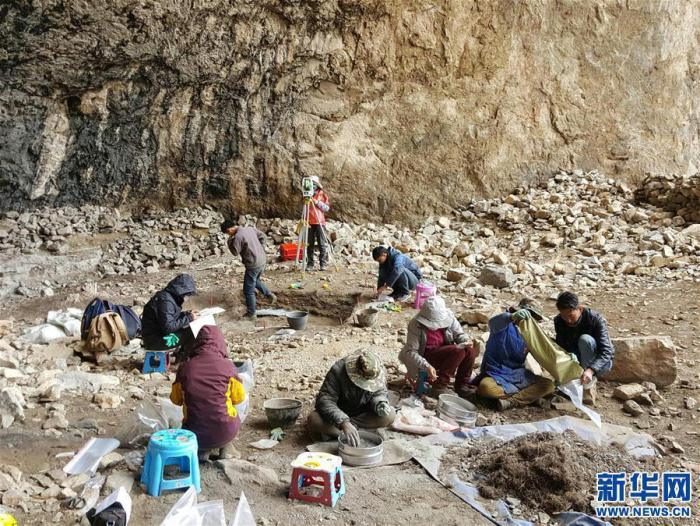聯合考古隊隊員在梅龍達普洞穴遺址開展科學考古發掘工作(2018年8月16日攝)。新華社發(西藏自治區文物保護研究所供圖)