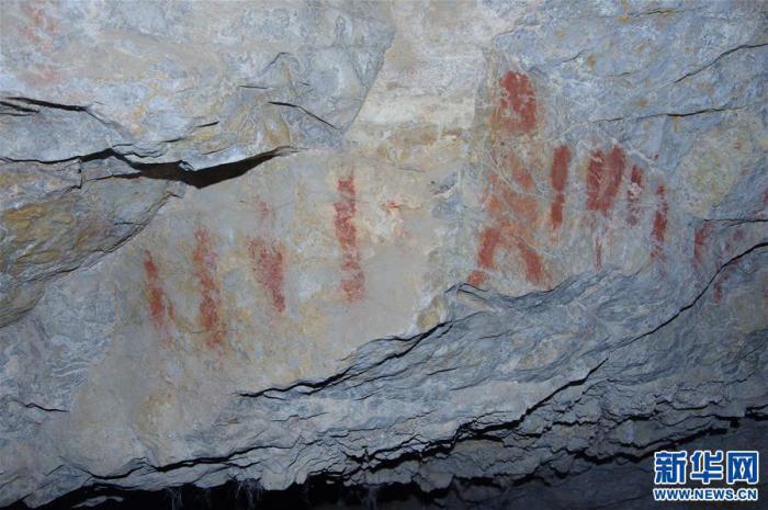 在梅龍達普洞穴遺址發現的巖畫(2018年8月3日攝)。新華社發