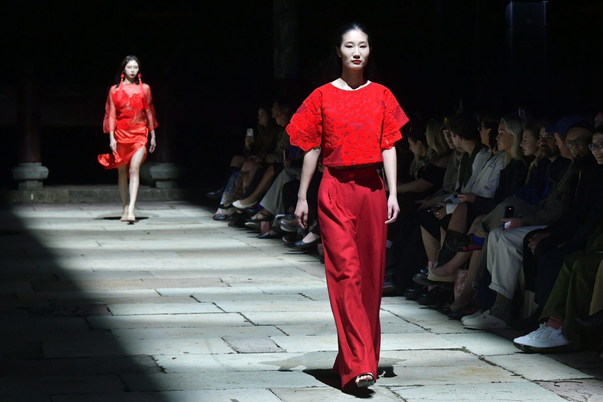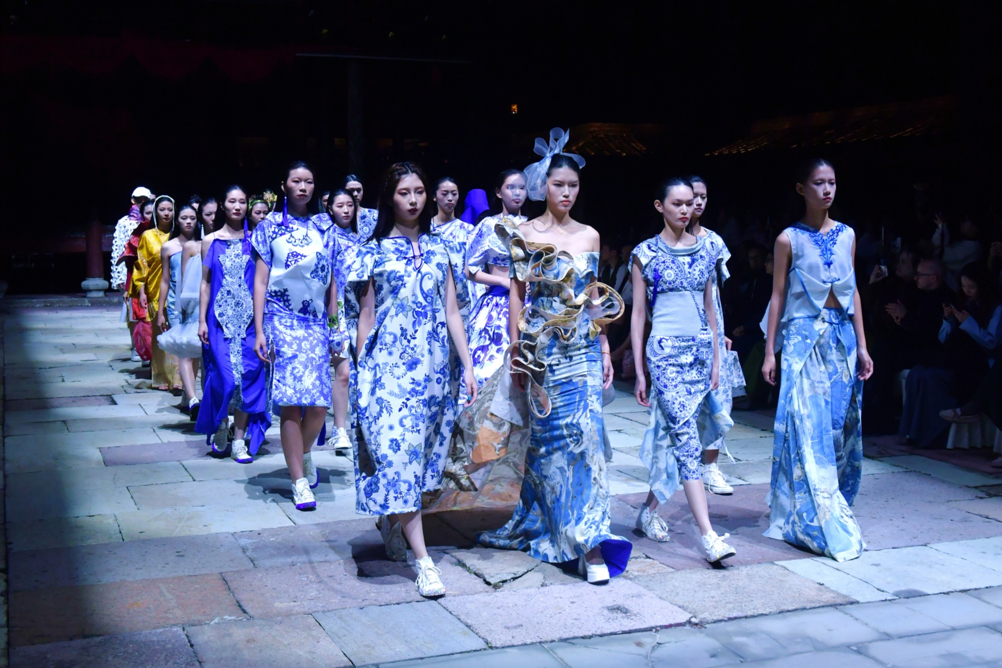 據(jù)了解,“One Day Project”自2015年啟動(dòng)以來,始終以“項(xiàng)目先導(dǎo)、快速創(chuàng)意、協(xié)同創(chuàng)新”為核心,要求學(xué)生在24小時(shí)內(nèi)完成從設(shè)計(jì)到走秀的全流程任務(wù)。此次十周年特展升級(jí)挑戰(zhàn)——18位中外教師、非遺傳承人及企業(yè)導(dǎo)師聯(lián)合指導(dǎo),480名中英學(xué)子跨專業(yè)協(xié)作,僅用11小時(shí),便圍繞錦緞、剪紙、青花金繕三大非遺元素,完成67套服裝的設(shè)計(jì)與制作。