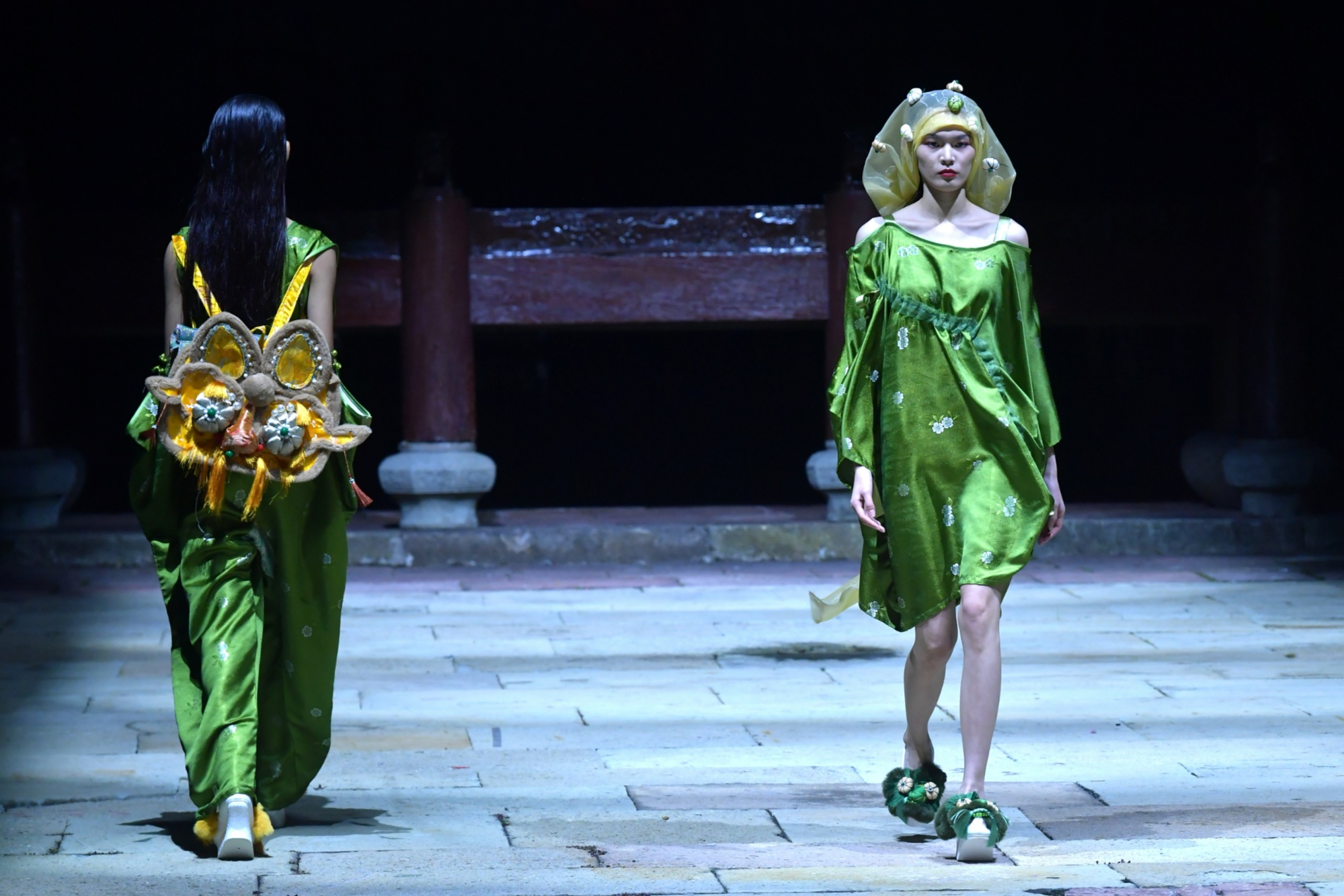 “我們組設(shè)計(jì)的主題是中國(guó)錦緞,融入了虎頭鞋、云肩珍珠、中國(guó)結(jié)等非遺元素。”浙江紡織服裝職業(yè)技術(shù)學(xué)院服裝設(shè)計(jì)專業(yè)大三學(xué)生張?zhí)K婷表示,“我們還和英國(guó)留學(xué)生一起縫制了虎頭鞋、虎頭帽和中國(guó)結(jié)背包,這也是我們這次展出的亮點(diǎn)。”