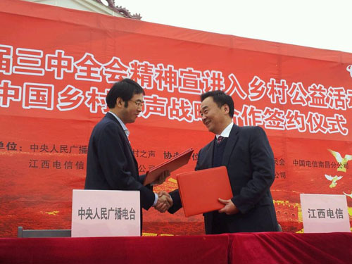 1月26日,中國鄉村之聲和中國電信江西分公司簽約儀式正式舉行。