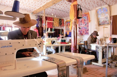 近年來,青海省玉樹藏族自治州治多縣積極開展能人帶動對接精準扶貧工作,一大批貧困群眾不僅脫了貧,還有了穩定的收入。嘎嘉洛利眾服裝加工有限責任公司的女老板仁措就是縣里的能人之一。她告訴記者,工廠幫扶的12人都來自貧困家庭,每人每月僅固定工資就1000元,算上家里其他收入,脫貧沒問題。圖為該公司工人正在趕制服裝。 本報記者郜晉亮攝